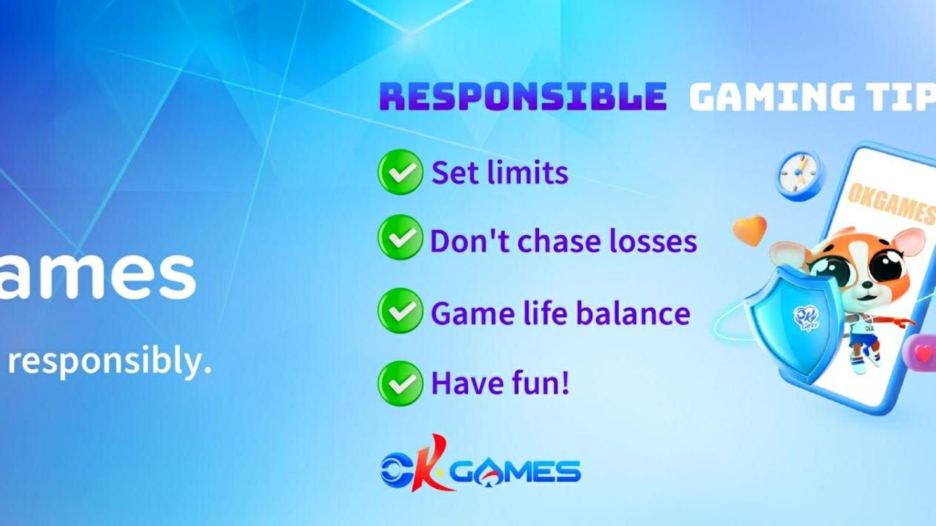 OKGames believes that online gaming is another form of entertainment that players can enjoy responsibly. As the only online gaming platform in the Philippines with a comprehensive Responsible Gaming System, OKGames continues to take meaningful steps to encourage a more balanced, more disciplined, and healthier way of online gaming.